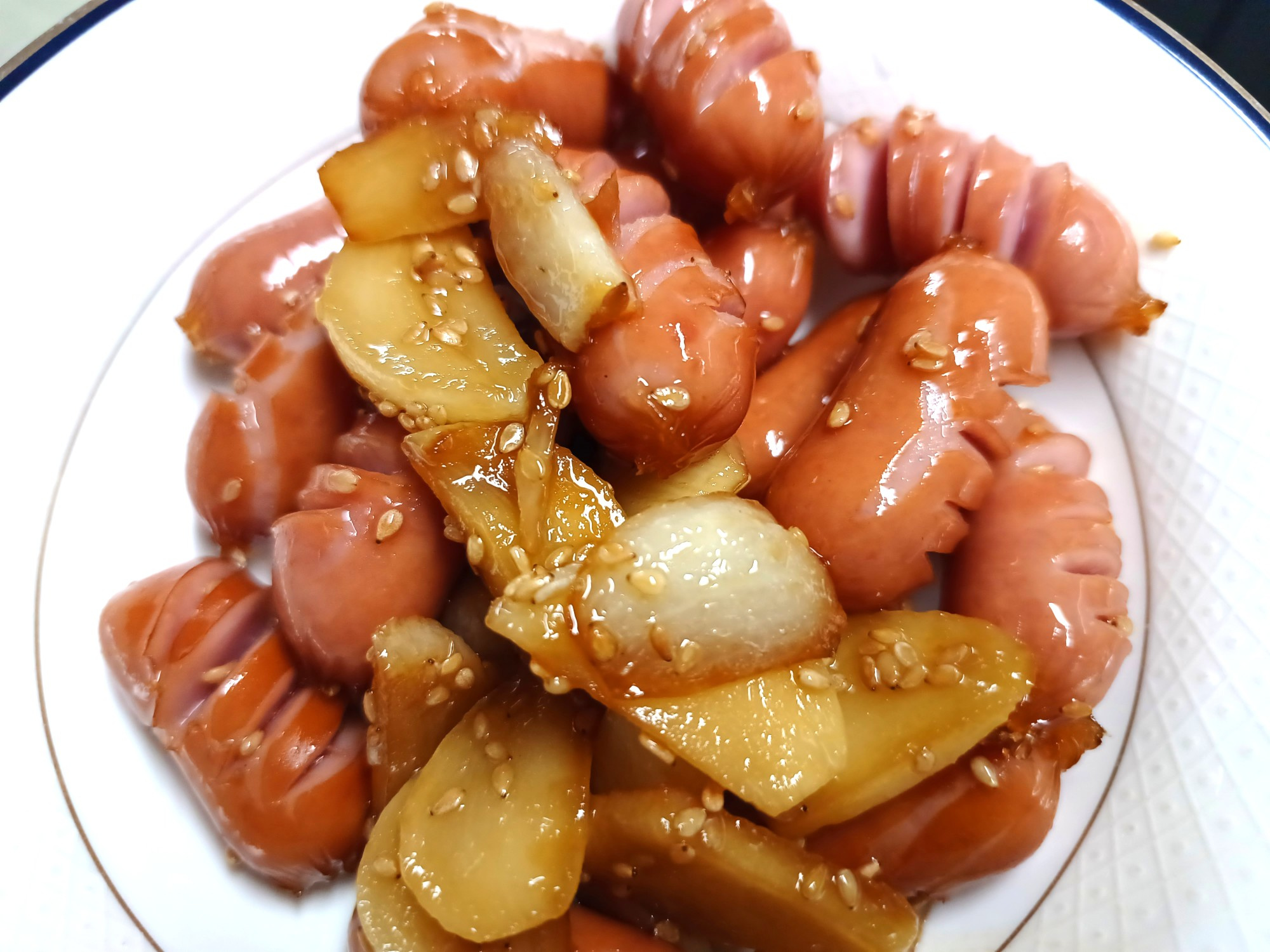 さあ、これで甘じょっぱい風味がたまらないウィンナーとニンニクの炒め物の完成です!温かいご飯にのせて食べれば、まさに「ご飯泥棒」!お子様の弁当のおかずとしても、簡単なビールのおつまみとしても申し分ない、最高のメニューです。どうぞ美味しく召し上がれ!