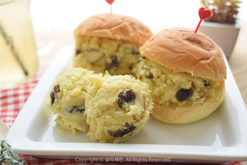 次に、準備しておいたアーモンドスライスとレーズンを、潰したさつまいもに加えて全体が均一になるように混ぜ合わせます。レーズンが潰れてしまわないよう、優しく混ぜてください。アーモンドの香ばしさとレーズンの甘みが、さつまいもと調和して美味しいハーモニーを生み出します。
