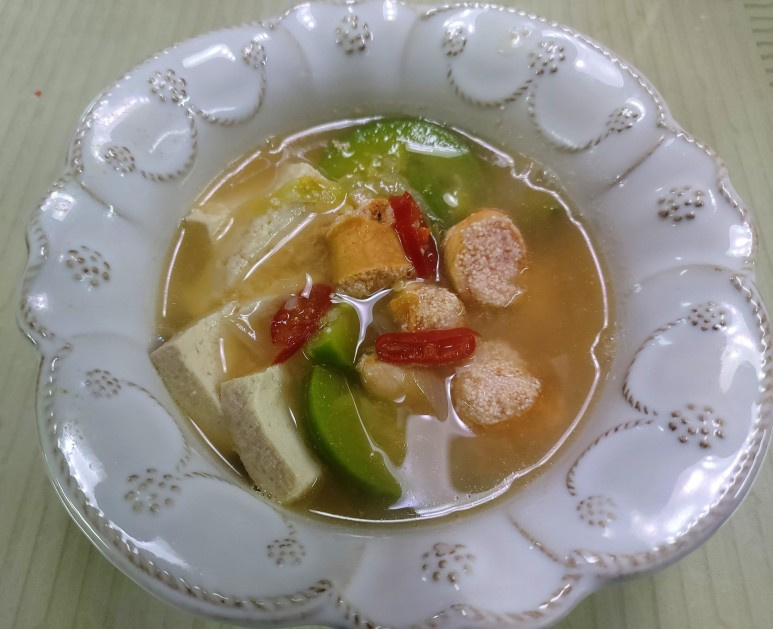ズッキーニはきれいに洗い、半月形に0.5cm厚さに切ります。豆腐も一口大に切り、長ネギは斜めに切って準備します。赤唐辛子は種を取り除いて薄切りにすると、スープの色合いもきれいになりますよ。
