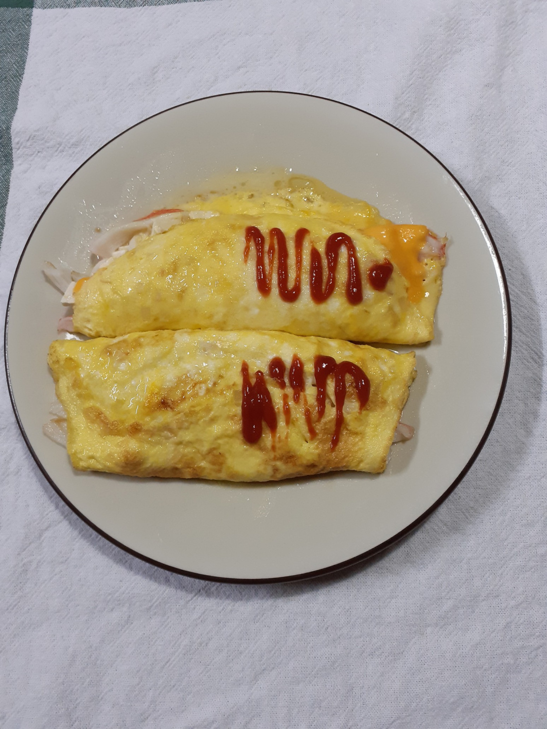 もし卵液が足りず、ロールの形がうまく作れなさそうな場合は、残りの卵液に牛乳を1〜2大さじほど加えて混ぜ、量を増やしてからフライパンに流し入れて薄く焼いてみてください。これでロールのサイズを大きくすることができます。