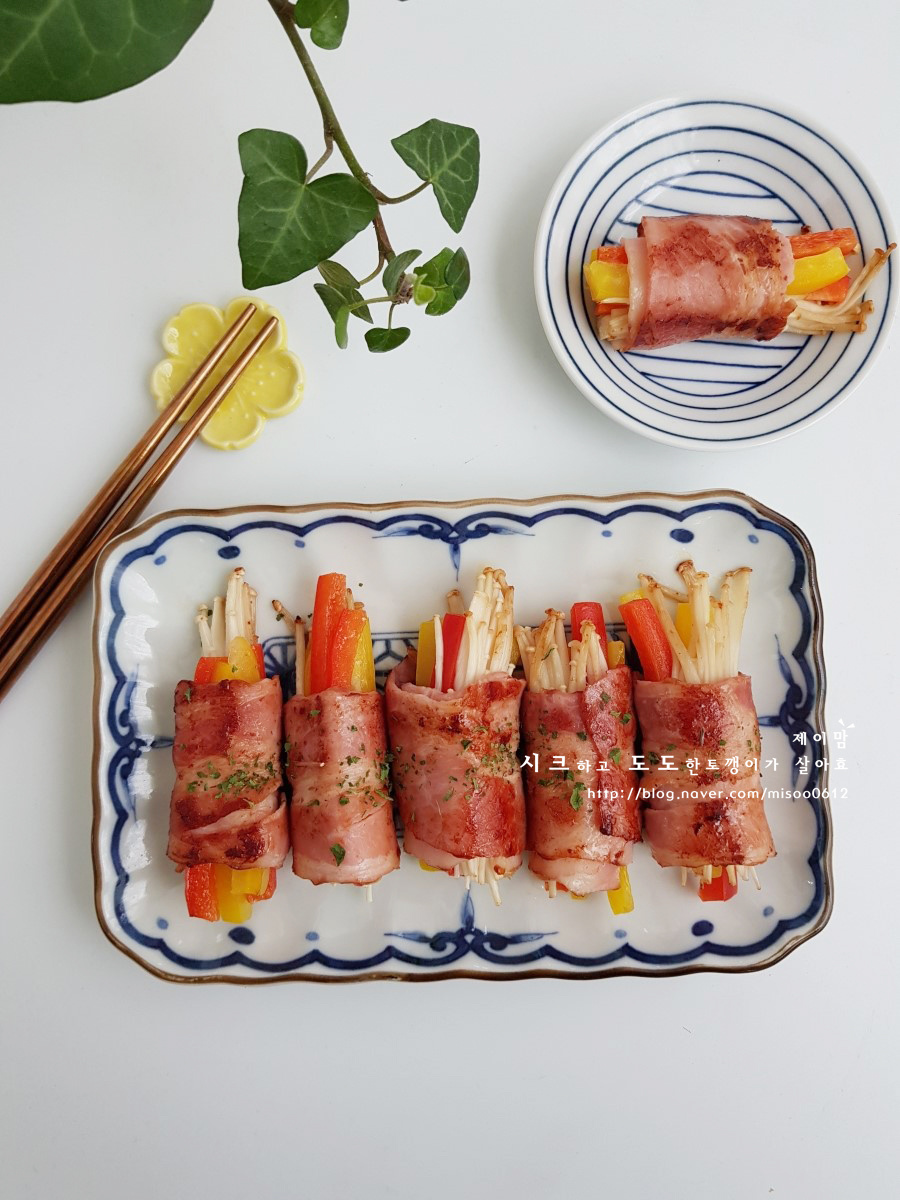 ぷりぷりエノキと旨味たっぷりベーコンの絶妙ハーモニー!エノキベーコン巻き