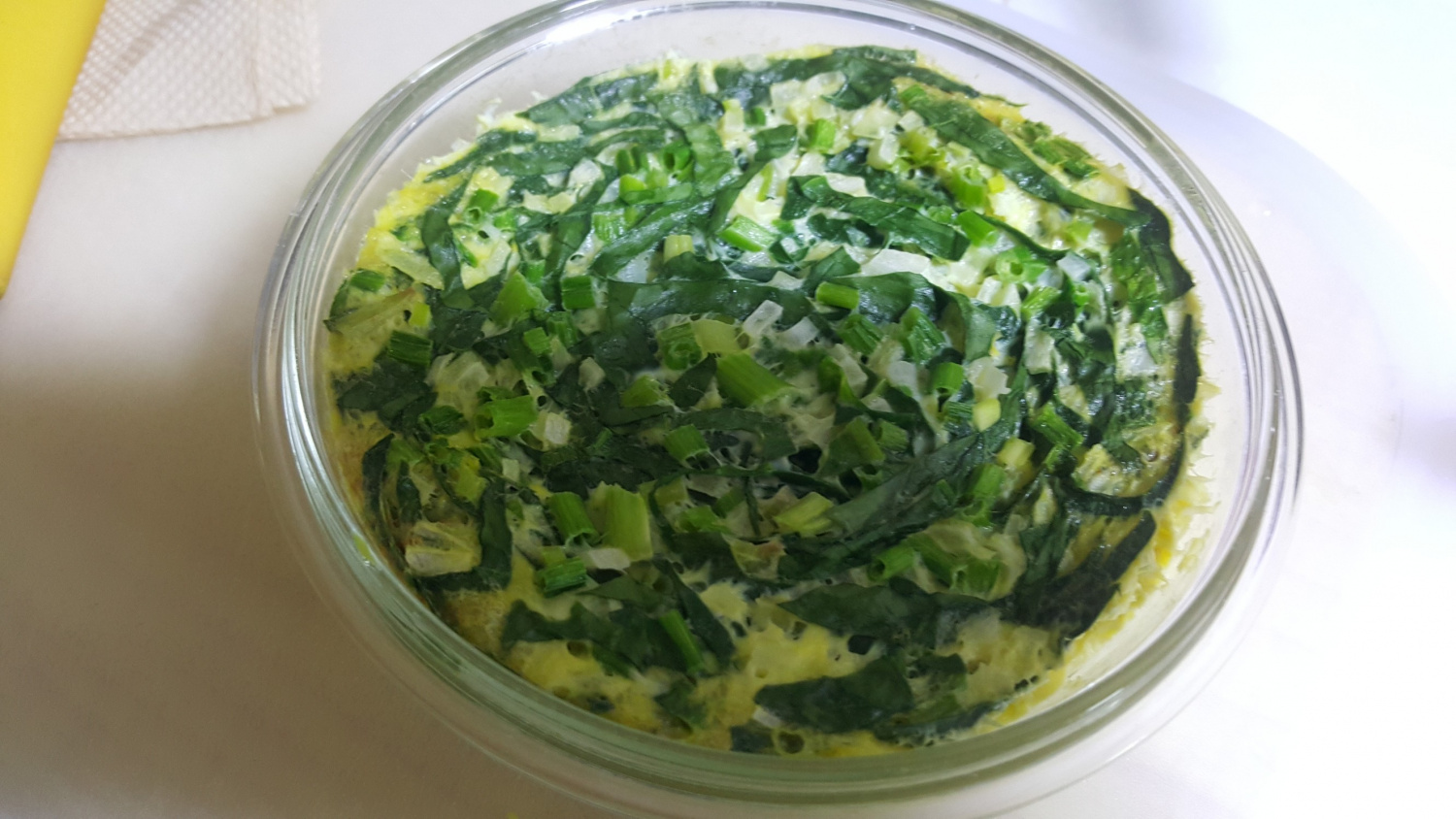 用意した卵液に、みじん切りにした玉ねぎと切ったほうれん草を加えて軽く混ぜ合わせます。器ごと電子レンジに入れ、約6〜7分間加熱します。電子レンジの機種によって加熱時間が異なる場合があるので、卵がふっくらと膨らみ、固まったかを確認しながら時間を調整するのが良いでしょう。竹串を刺してみて、澄んだ汁が出れば完成です!