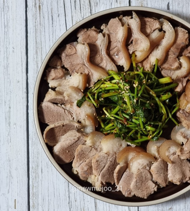 豚のアルロンサテ(肩肉)茹で肉レシピ – ミナリの和え物と最高の相性!