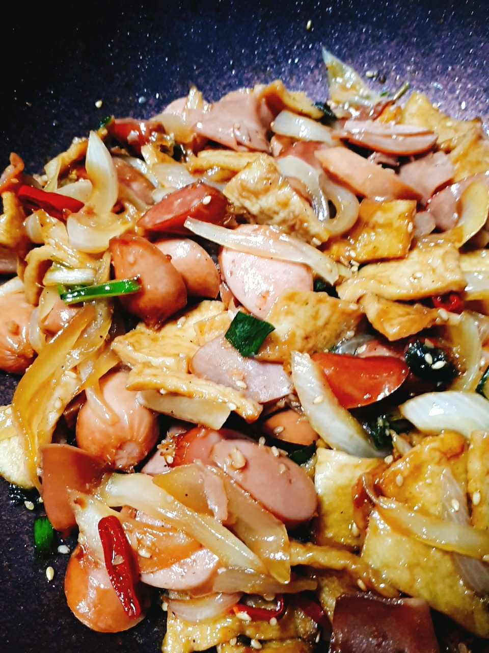 もちもちおでんとかつととしたウィンナーの絶品炒め