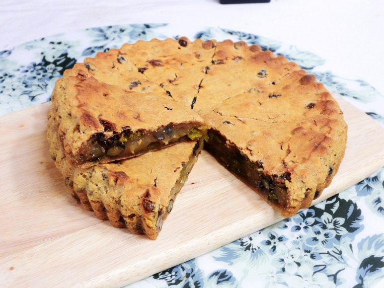 オーブンから取り出したもち米ケーキを十分に冷ましてから、型から慎重に取り出します。崩れずにきれいに切るためには、完全に冷ますことが最善です。食べやすい大きさにカットしてください。
