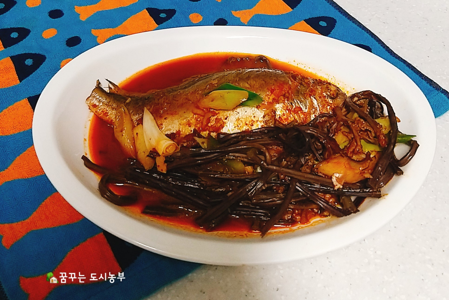 家庭で楽しむ絶品おかず、茹でわらびとニベの煮付けの作り方