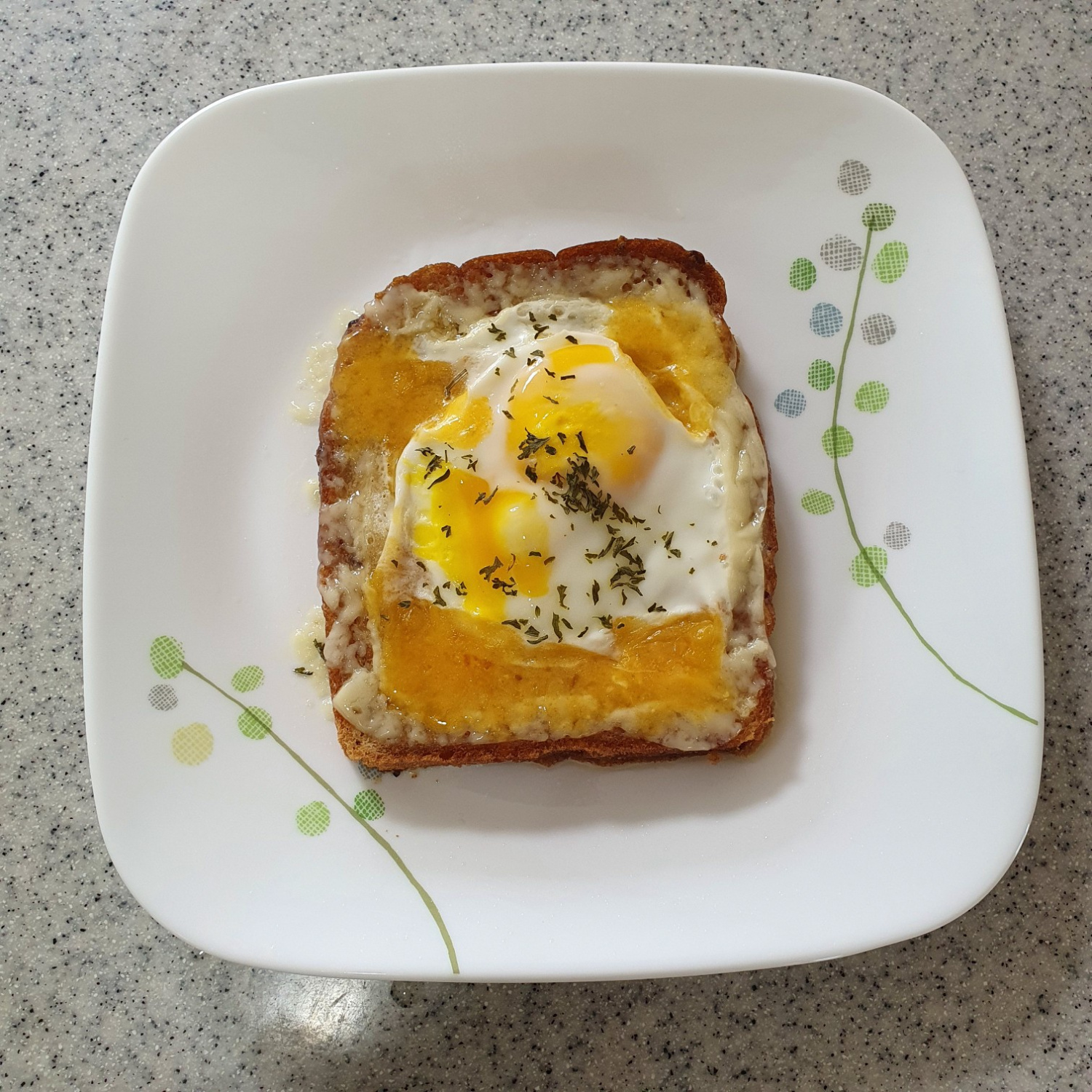 甘みをプラスする砂糖を卵の上やパンの周りにパラパラと振りかけ、最後に香りの良いパセリ(乾燥)を軽く散らします。見た目も風味もアップしますよ。
