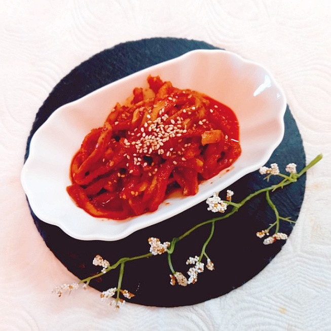 コリコリ食感と甘辛いヤンニョムが絶妙!茹で豚(ポッサム)に添えると格別な美味しさのムルフェキムチを、ご自宅で手軽に作ってみましょう。