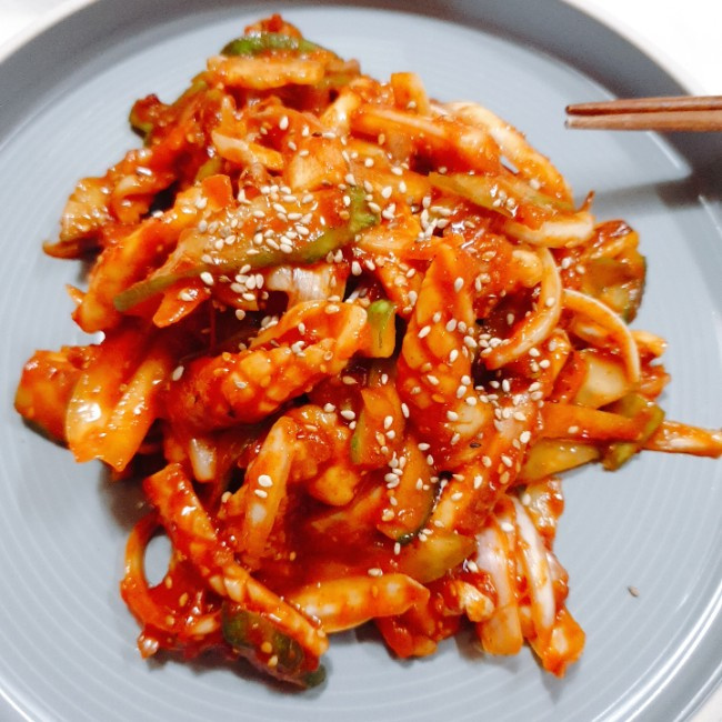 子供の頃、きゅうりだけをこっそり食べていたイカときゅうりの和え物を思い出して作ってみました。新鮮なきゅうりのシャキシャキ感と、もちもちのイカの食感が絶妙なこの料理は、食欲がない時でも食欲をそそります。ご飯のおかずにも、お酒のおつまみにもぴったりな和え物のレシピを詳しくご紹介します。(計量は一般的な韓国のライススプーン基準です。)