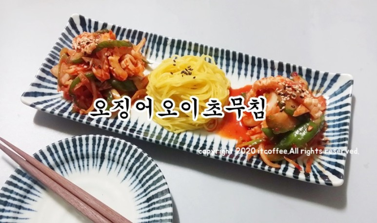 この和え物には、イカの胴体部分のみを使います。一緒に添えるイカの足の部分は細かく刻み、野菜と一緒にチヂミ(韓国風お好み焼き)にすると絶品です。(ヒント:余ったイカの足を活用して、さらに満足感のある食事を楽しみましょう!)