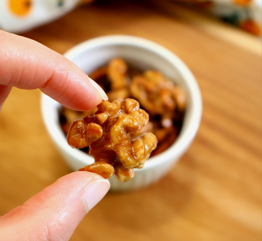 お子様からご年配の方まで、みんなが大好きなヘルシーおやつ、くるみの甘露煮(クルミカンジョン)をご紹介します。オーブンで焼き上げることで、外はカリッと、中はしっとり甘く仕上がります。揚げずに、小麦粉も使わないので、罪悪感なく楽しめるのが嬉しいポイント。ヨーグルトやアイスクリーム、サラダのトッピングにしても最高です。冬場の小腹が空いた時に手軽に楽しめ、適度な間食は満腹感を保ち、食べ過ぎを防ぐのに役立ちます。何でもかんでも食べるのではなく、栄養満点のくるみカンジョンを選んでみませんか!