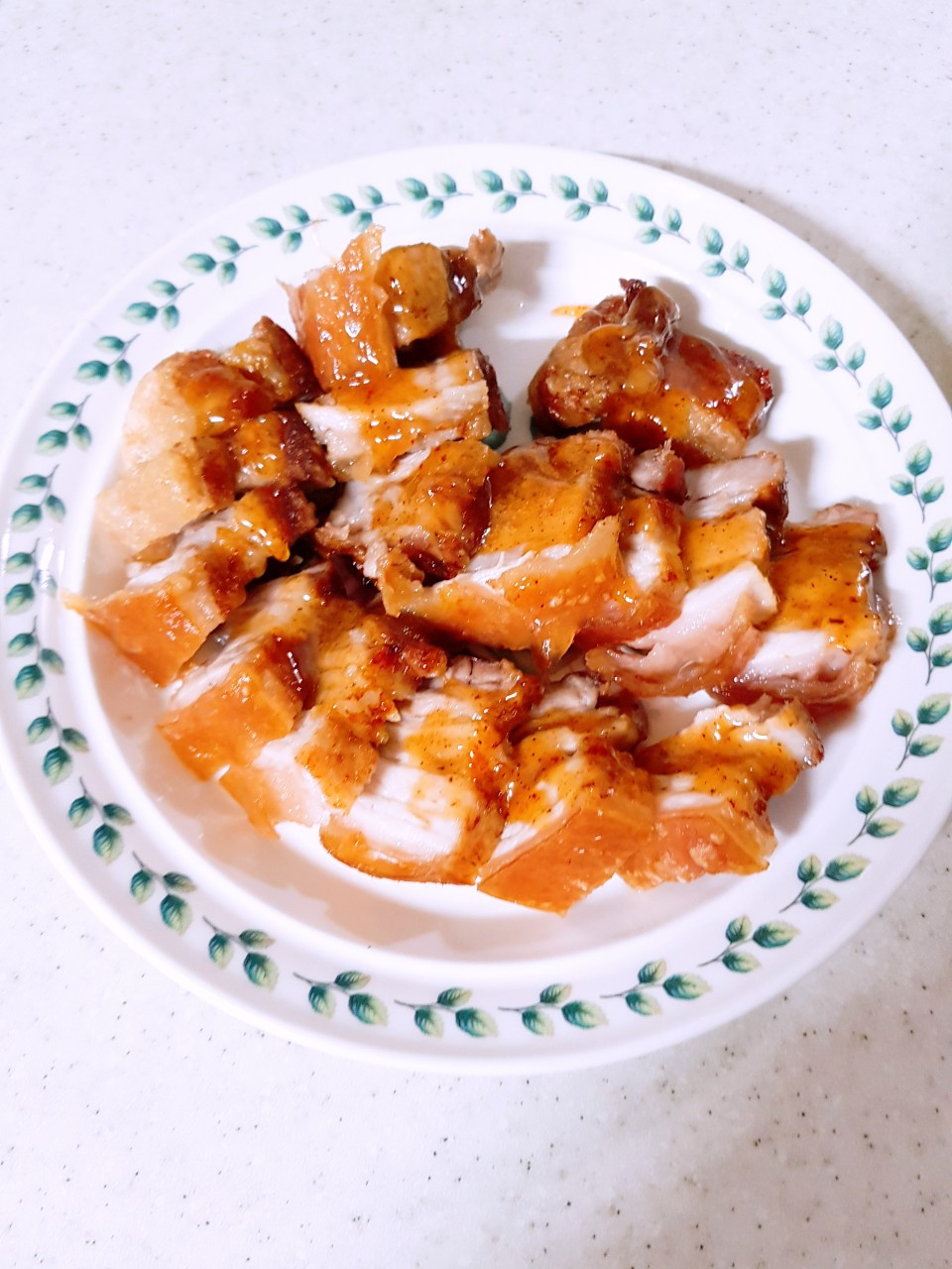 60分後、エアフライヤーから取り出したサムギョプサルは、皮の部分が食欲をそそる黄金色になり、完璧にカリカリになっていることを確認できます。