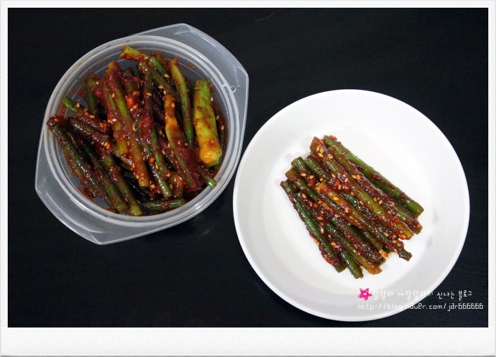 にんにくの芽のコチュジャン和えの調味料:コチュカル大さじ1、おろしにんにく小さじ0.5、コチュジャン大さじ2、醤油大さじ2、梅エキス大さじ2、オリゴ糖小さじ0.5、砂糖小さじ0.5を加えてよく混ぜ合わせます。(すべての計量は韓国の一般的な食事用スプーン基準です。)