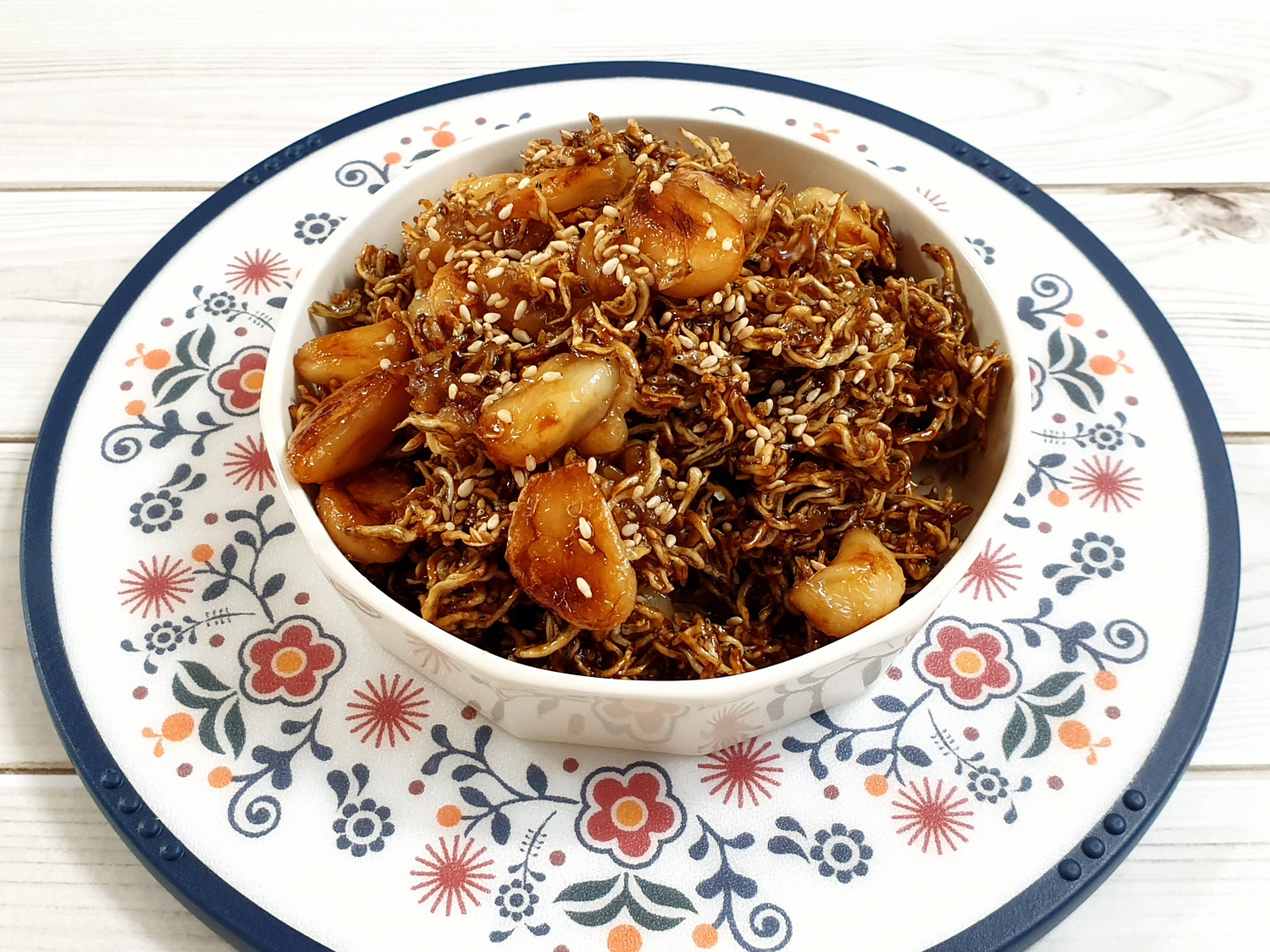 魚臭さを一切感じさせず、最初から最後までカリカリで香ばしい小魚の炒め物を作る秘訣をお教えします。丸ごとニンニクを加えることで、噛み応えのある甘みが加わり、食卓が豊かになること間違いなしの常備菜が完成します!