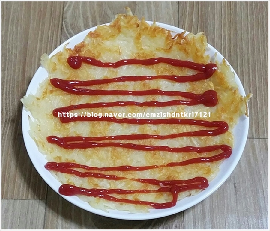 じゃーん!このように食欲をそそる、カリカリのポテトパンケーキが完成しました。そのままでも美味しいですが、甘酸っぱいケチャップにつけて食べると、まさに最高の組み合わせです。(ヒント:醤油につけて食べるのも良いですが、ケチャップと一緒に楽しむと、モスバーガーのフライドポテトとはまた違った魅力を感じることができます!)