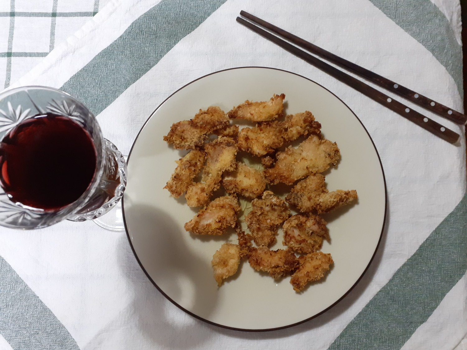 私は2回に分けてエアフライヤーで調理しました。出来上がったチキンは、スイートチリソースやケチャップを添えてディップしながら食べると、さらに美味しく楽しめます。