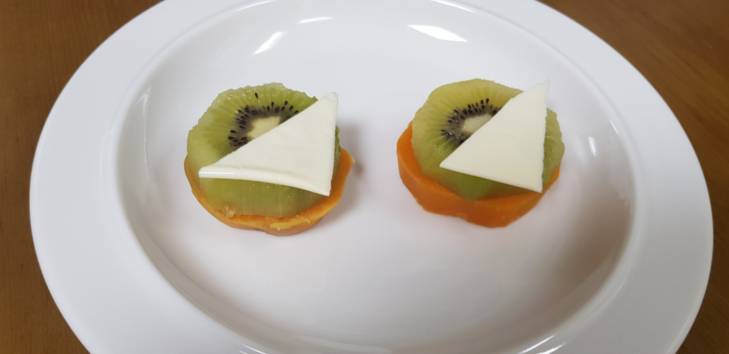 まず、材料を準備しましょう。新鮮なゼスプリキウイを1切れ、あらかじめ蒸して(または茹でて)おいたさつまいもを1切れ、そしてお好みのスライスチーズを1枚用意します。さつまいもは、皮ごと蒸してから皮をむくと、より手軽に準備できます。