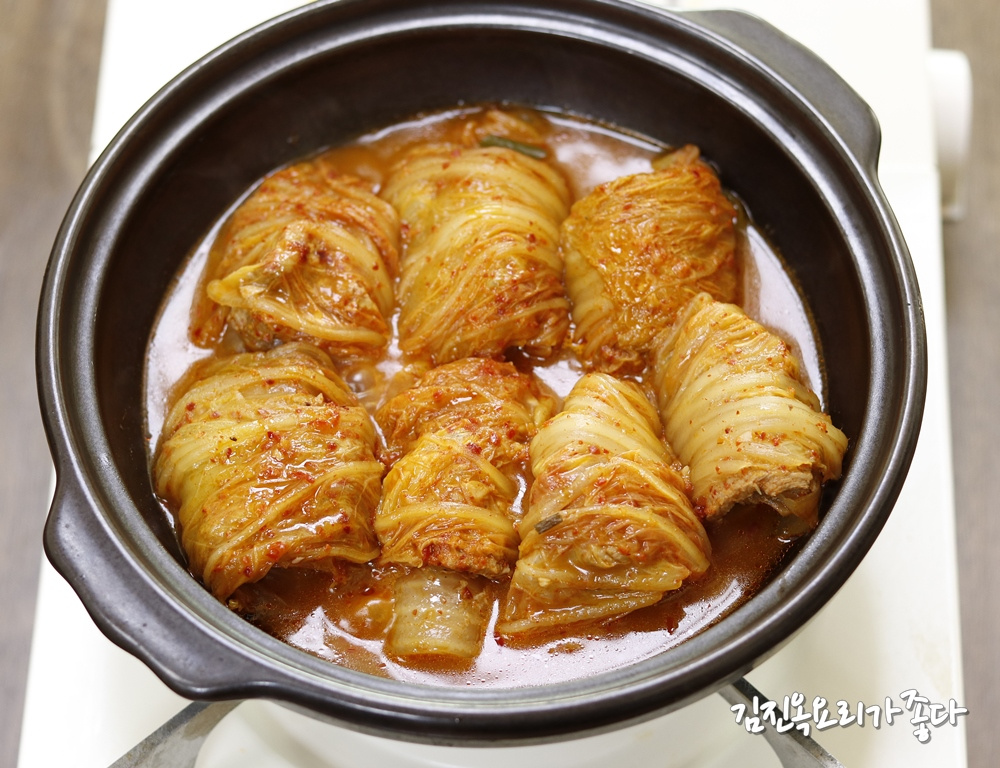こんにちは!キム・ジノクです。キムチが美味しく熟成するこの季節、肌寒い日にぴったりの、簡単なのに見栄えもするお料理「キムチ巻きチゲ」をご紹介します。よく熟した白菜キムチに、下味をつけた豚肉をくるくると巻き込み、風味豊かな煮干しと昆布の出汁で煮込むこのチゲは、まさにご飯泥棒です。私は柔らかい食感を求めて豚の首肉(ロース)を使用しましたが、お好みでバラ肉や肩ロースを使っても良いでしょう。深い味わいと具材の豊富さが調和し、家族みんなで満足できる魅力的なメニューです。