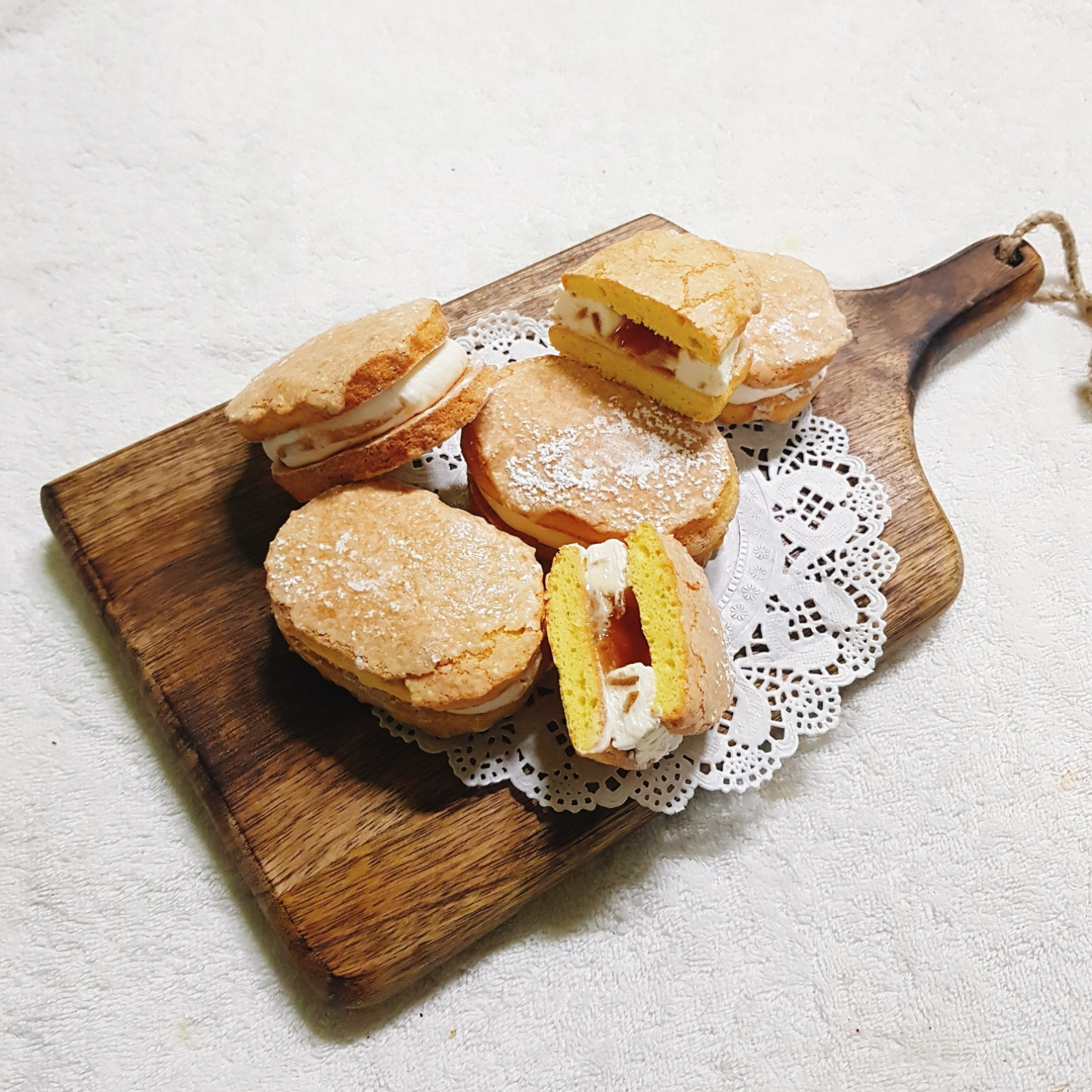 フィリングを挟んでいないもう一枚のダックワーズを上に重ねれば、しっとり爽やかなクリームチーズゆずダックワーズの完成です!どうぞ召し上がれ!