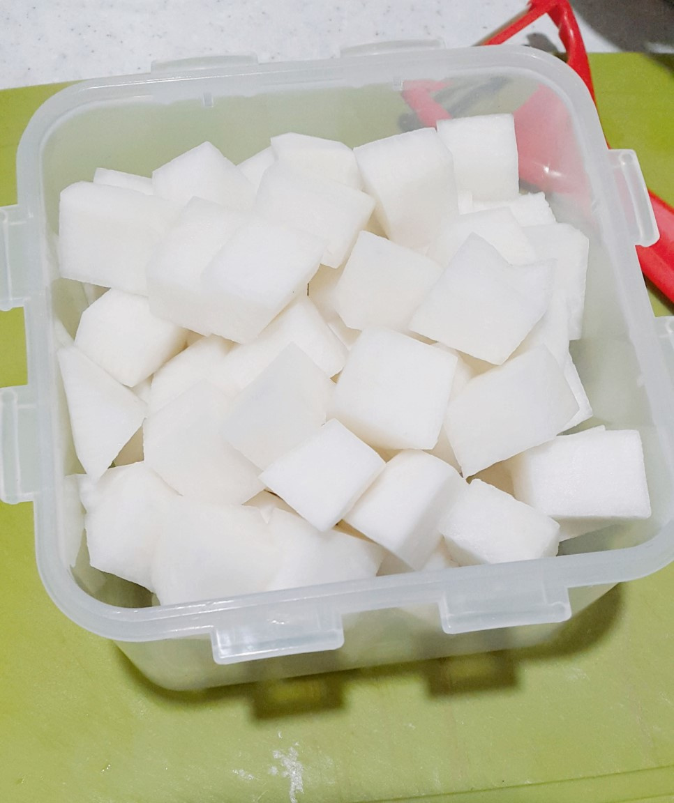 まず、大根の皮を薄くむき、きれいに洗ってください。次に、食べやすい大きさの角切り(約2〜3cm角)にします。切った大根に粗塩小さじ1/2を全体にまぶし、約15分ほど置いて水分を出します。これにより、大根がさらにパリパリとした食感になります。