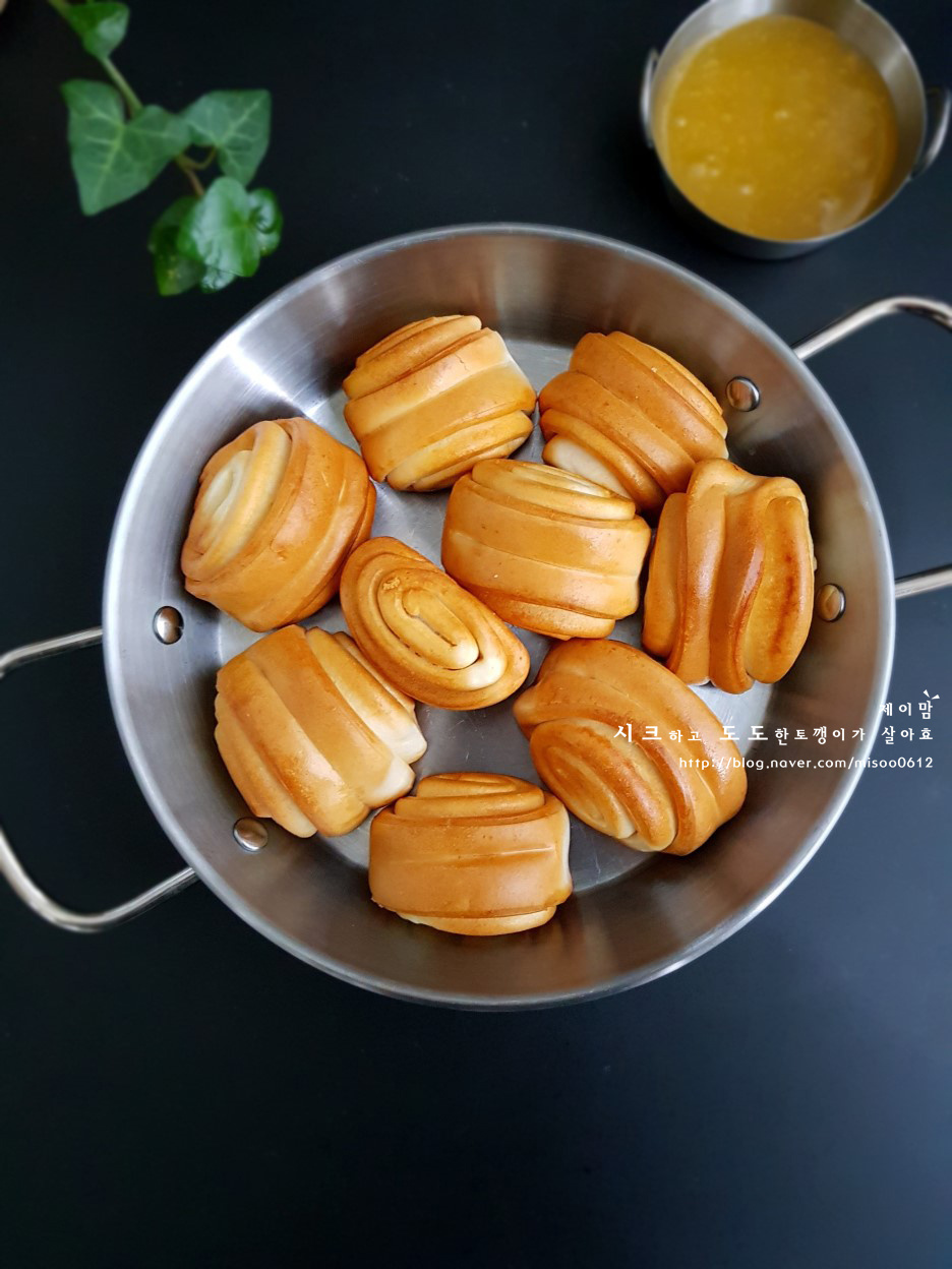 揚げたての温かい花パン揚げを、お皿にきれいに盛り付けます。お好みで、甘い練乳やはちみつをたっぷりとかけると、さらに美味しいおやつが完成します。温かいうちにすぐいただくのが一番おいしいので、ご家族やお友達と一緒に楽しいティータイムをお過ごしください!