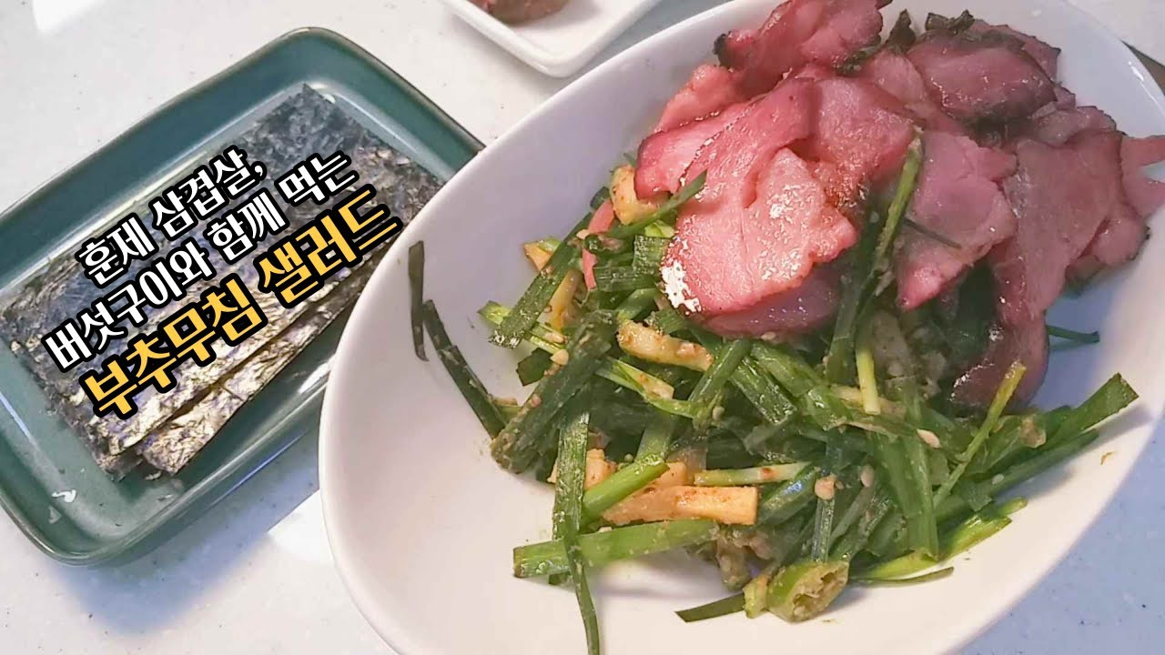 豚バラ肉の燻製、香ばしいきのこグリルとの相性抜群!新鮮なニラで作る、シャキシャキ食感の甘酸っぱいニラサラダのレシピ