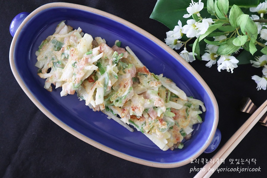 晩秋、最も美味しくなる時期に実家からいただいた甘みたっぷりの大根を使って、冬の味覚「大根チヂミ(ムジョン)」を作りましょう。たくさんいただいた大根は、汁物やナムルにも最適ですが、娘が急にチヂミを食べたいと言い出したので、大根とネギ、そしてスライスハムをたっぷり加えて、こんがりと焼き上げたムジョン・レシピです。大根のシャキシャキとした食感と上品な味わいが絶品で、冬のおやつやご飯のおかずにもぴったりです。お手頃価格で甘い秋大根を使った、健康的で美味しい伝統料理、ムジョンで食卓を豊かにしましょう。