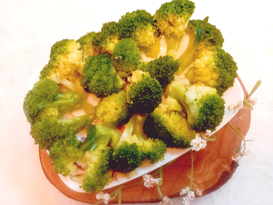 じゃーん!こうして茹でることで、ブロッコリーの鮮やかな緑色と、シャキシャキとした食感が保たれた完璧な状態になります。これで、美味しいブロッコリーの茹で上がりは完成です。サラダや炒め物など、様々な料理に活用してくださいね!