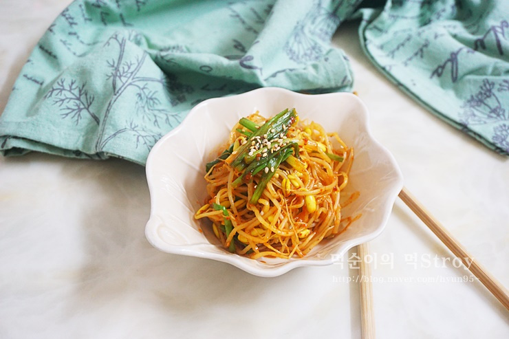 美味しいもやし炒めのためのタレを作りましょう。ボウルに唐辛子粉(コチュジャン)大さじ1、砂糖大さじ0.5、醤油大さじ2、料理酒(みりんや焼酎でもOK)大さじ2、おろしにんにく大さじ0.5、そしてごま油大さじ1を入れます。全ての調味料が均一に混ざり合うまで、よくかき混ぜてタレを完成させます。