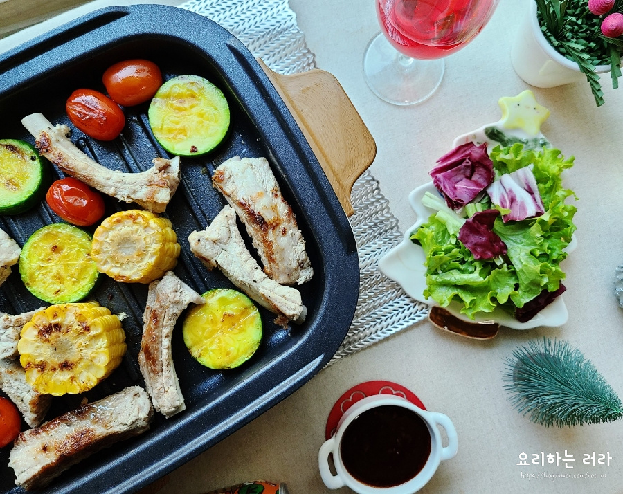 お肉はやはり、目の前でジュージューと焼けていく姿が一番美味しいですよね!今回は、一度下茹でをして下味と熟成を経た豚スペアリブを、食卓の上で直接焼いて食べる特別なバージョンをご用意しました。外は香ばしく、中はジューシーに焼きあがったスペアリブと、甘酸っぱい手作りBBQソースの幻想的な調和を体験してください。ホームパーティーや特別な日、家族みんなで楽しむのに最適です。