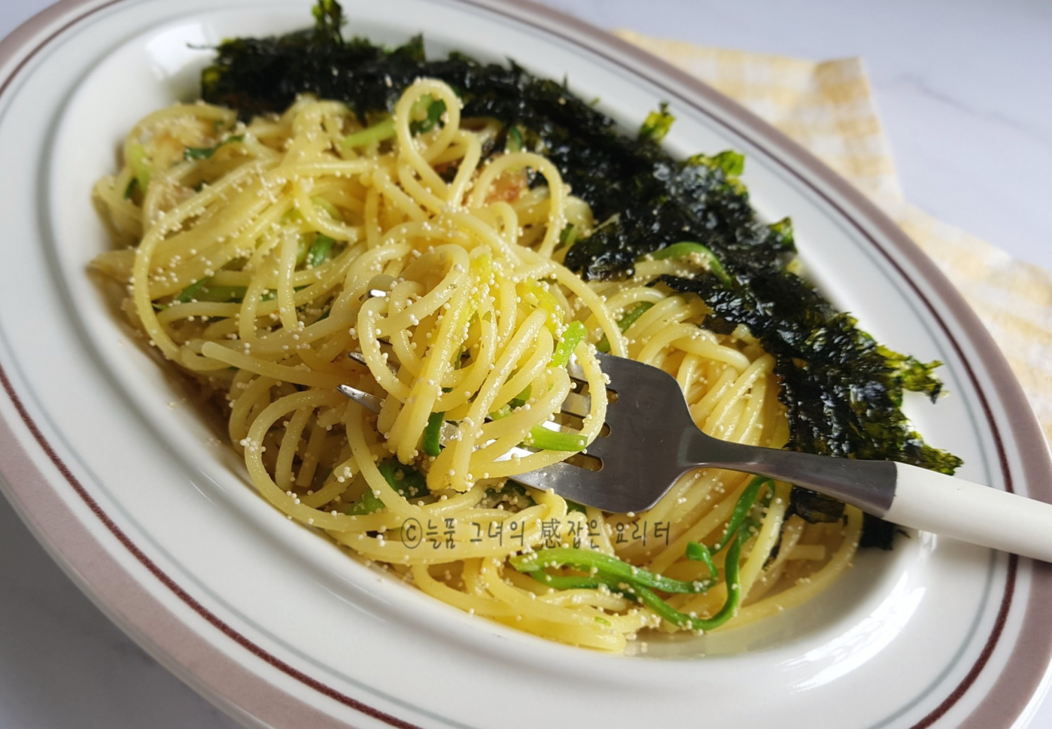 出来上がったズッキーニと明太子パスタを、食欲をそそるお皿に盛り付けます。最後に、味付け海苔を細かく刻んでパスタの上に散らすと、さらに豊かな旨味と香ばしさを加えることができます。本格的なズッキーニと明太子パスタをぜひお楽しみください!