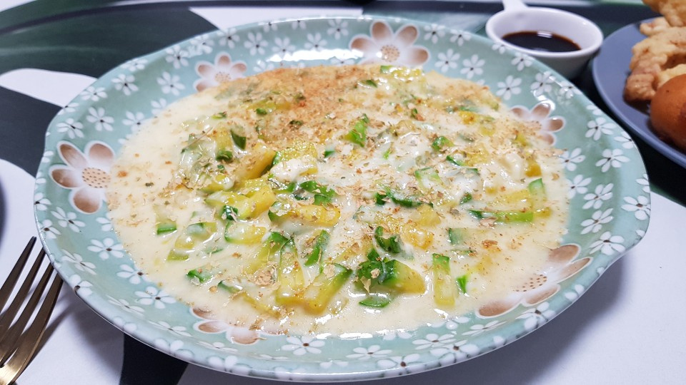 美味しそうなズッキーニチーズ焼きの完成です!温かいうちに召し上がってください。最高のおつまみになりますよ!