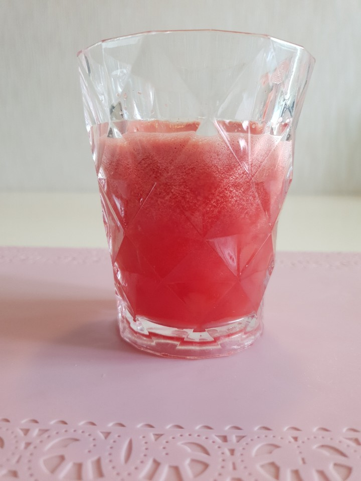 こうして抽出(または撹拌して濾した)したスイカジュースを、清潔な容器に移し、冷蔵庫で冷やして保管してください。飲む直前にキンキンに冷やすと、さらに美味しくいただけます。