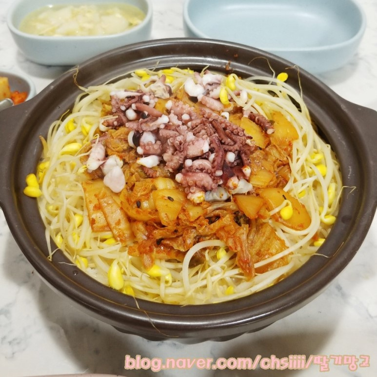 テレビ番組「冷蔵庫をお願い」からインスピレーションを得て、お肉の代わりにタコをたっぷり使った、ちょっと贅沢なキムチ豆もやしご飯のレシピをご紹介します。韓国の伝統的な土鍋、뚝배기(トッペギ)で炊き上げることで、ふっくらと美味しいご飯に仕上がります。香りの良いネギだれをたっぷりかけて混ぜれば、もう止まらない美味しさ!食欲をそそるピリ辛さと、タコの旨味が絶妙に絡み合う、家族みんなで楽しめる一品です。