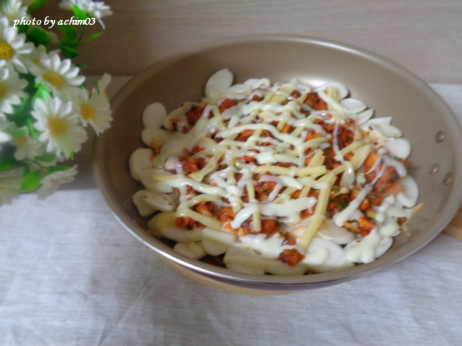 余ったトックク餅で簡単!食べるトックク餅ピザ、お子様のおやつに最高!