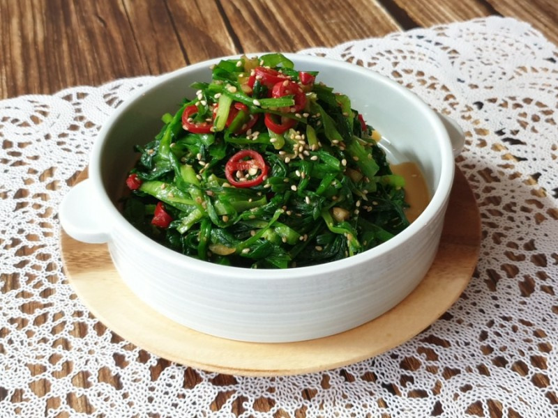 最後に味見をして、足りない場合は塩で味を調えてください。甘みがありながらもシャキシャキとした食感が生きている美味しいニラのおひたしの完成です。ご飯のおかずにも、お肉料理の付け合わせにもぴったりです。