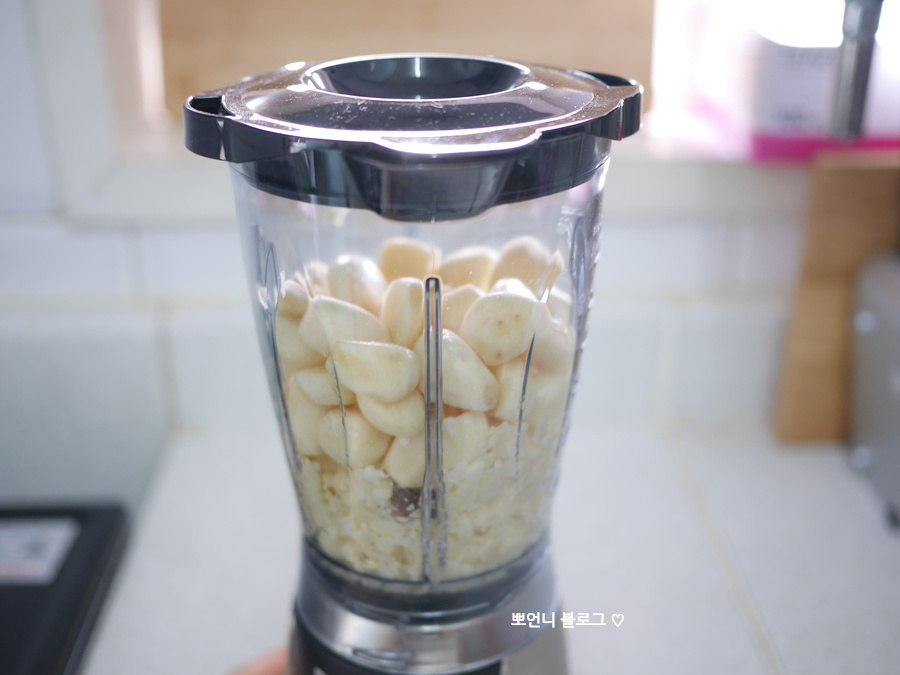 水気を拭き取ったニンニクは、細かくみじん切りにしていきます。包丁でも良いですが、より早く簡単に仕上げたい場合は、フードプロセッサーやミキサーの活用がおすすめです。塊がなくなるまで、なめらかなみじん切りになるまでしっかり撹拌してください。