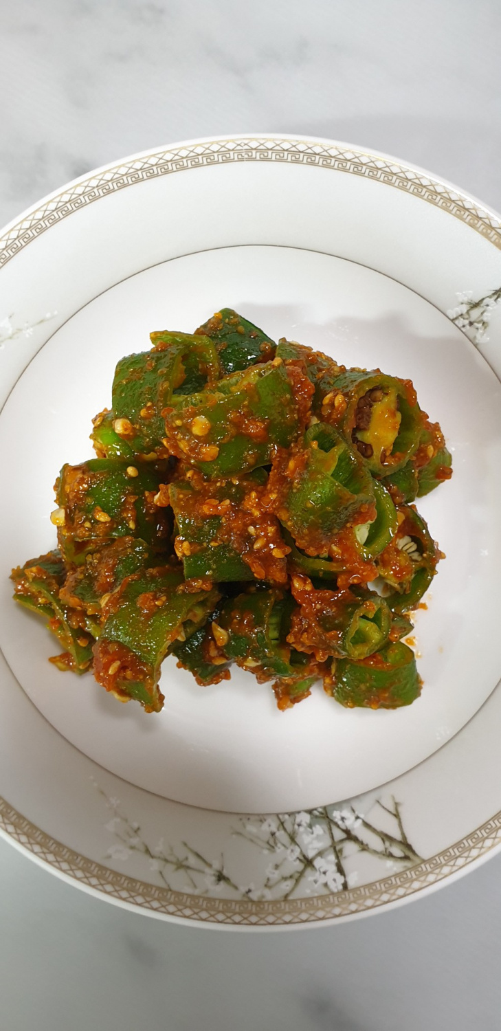 まず、韓国唐辛子は流水で丁寧に洗い、しっかりと水気を切ってください。ヘタを軽く切り落とし、食べやすい大きさ(約3~4cmの長さ)に切って準備します。あまり細かく切りすぎると食感が損なわれることがあるので、適度な大きさがおすすめです。