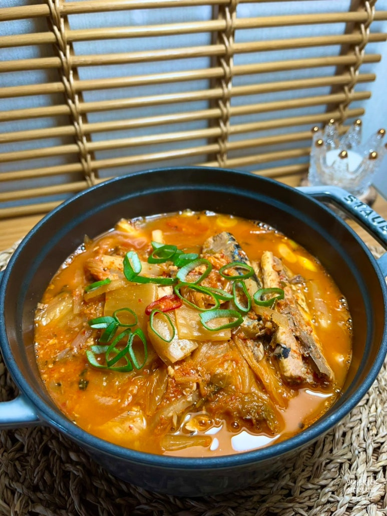 最後に、準備しておいた玉ねぎ、長ネギ、唐辛子を加え、さらにひと煮立ちさせれば、深みのあるピリ辛なサバ缶キムチチゲの完成です!市販のサバ缶を使うと、豚肉のキムチチゲよりもずっと手軽に、素早く作れるので、忙しい日にもぴったりです。お好みで豆腐や他の野菜を加えても美味しく、辛さは粉唐辛子や青唐辛子で調整してみてください。よく熟成したキムチを使って、食欲をそそる美味しいサバ缶キムチチゲで、満足感のある一食をお楽しみください!
