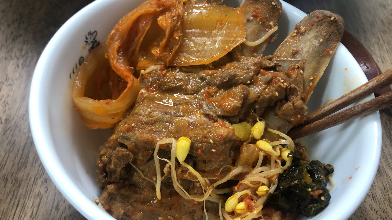 よく煮込まれた柔らかい背骨の肉をほぐし、ピリ辛のキムチとシャキシャキの豆もやしを添えて、熱々を召し上がれ!ご飯が止まらなくなる、絶品メニューです。