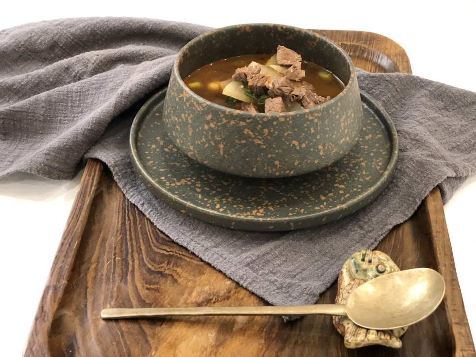 韓国の家庭でよく作られる牛肉と大根のスープ(ソゴギムグク)は、食卓に欠かせない定番料理です。作り方も難しくなく、それでいて上品で深みのある味わいが楽しめます。お祝いの席にも登場する、伝統を感じさせる一品です。私は胃腸の調子があまり良くなく、定期的な検査を受けていますが、辛いものがやめられず、今回は唐辛子粉を加えてピリ辛にアレンジしてみました。きっと私だけでなく、皆さんもこうして楽しまれているのではないでしょうか?温かいスープにご飯をたっぷり入れて食べると、体が芯から温まるのを感じます。