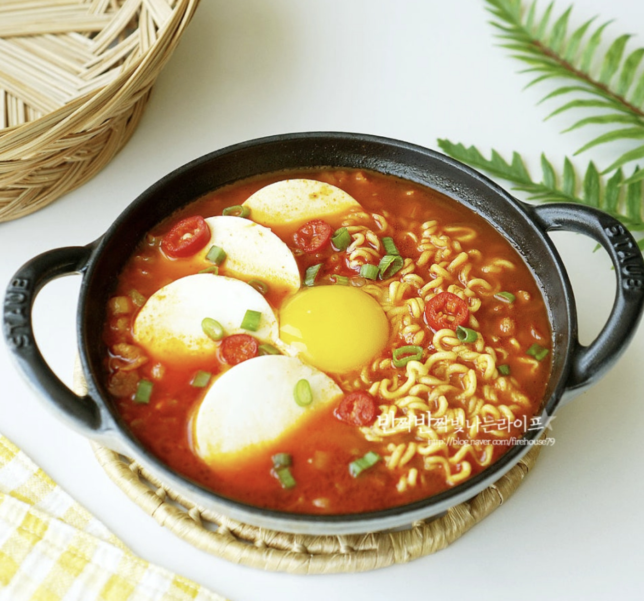麺が伸びすぎる前に、ちょうど良い硬さ(アルデンテ)が残っているうちに火を止めると、美味しいスンドゥブ ヨルラミョンの出来上がりです!熱々のうちに召し上がれ。