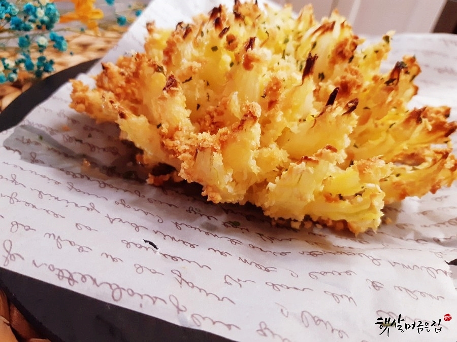 設定時間が経過したら、見た目も美しく、味も絶品のブルーミングオニオンの完成です!温かいうちに召し上がると、最高の味わいが楽しめます。