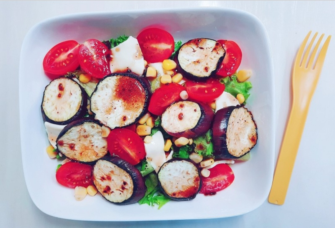 香ばしい焼きナスとオリエンタルドレッシングのダイエットサラダ