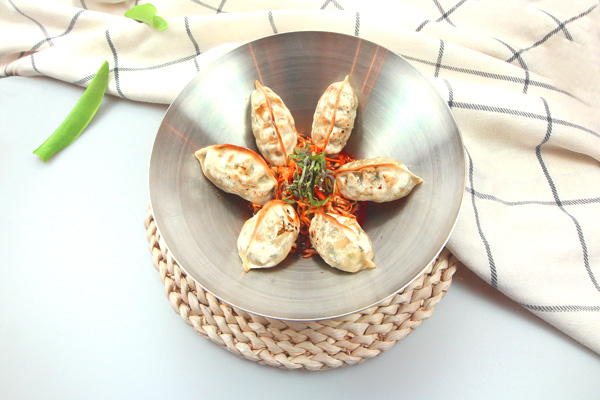 オーブンの予熱:オーブンを180℃に予熱してください。オーブンがない場合は、フライパンに油をひき、中弱火でマンドゥの両面がきつね色になりカリッとするまで焼いても美味しくいただけます。