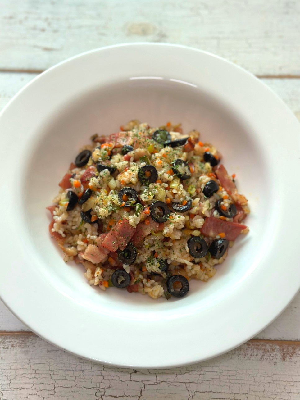 オリーブの香りが満載!ベーコンとオリーブのチャーハンの作り方