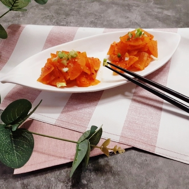 キッチンでサッと一品!食欲がない時にもぴったりの、甘酸っぱくポリポリとした食感のたくあん和えを、簡単・時短で作ってみましょう。ご飯のおかずはもちろん、ビビンククスやビビンバに添えても最高です。