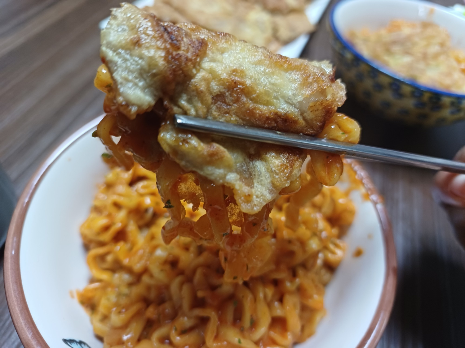 カリッと美味しいデペサムギョプサルチヂミの作り方、激辛炒め麺のお供に最高!