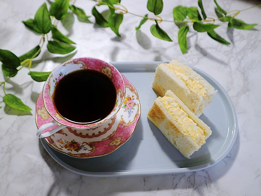 淹れたてのコーヒーと一緒にサンドイッチをどうぞ。卵がたっぷり入っているので、満足感のある朝食になります。夏でもホットコーヒーとの相性は抜群です。