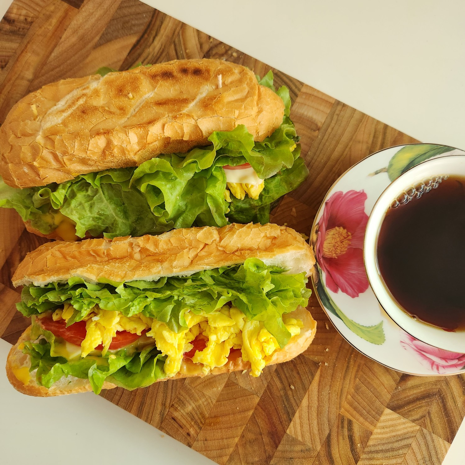 様々な食材が組み合わさって栄養満点、一食としても満足感があります。香り高いコーヒーや、お好みの飲み物と一緒にブランチとして楽しむと、さらに美味しくいただけます。(ヒント:もしバインミーパンが手に入らない場合は、外がカリッとしたチャバタパンで代用しても、とても美味しいサンドイッチが作れますよ!)